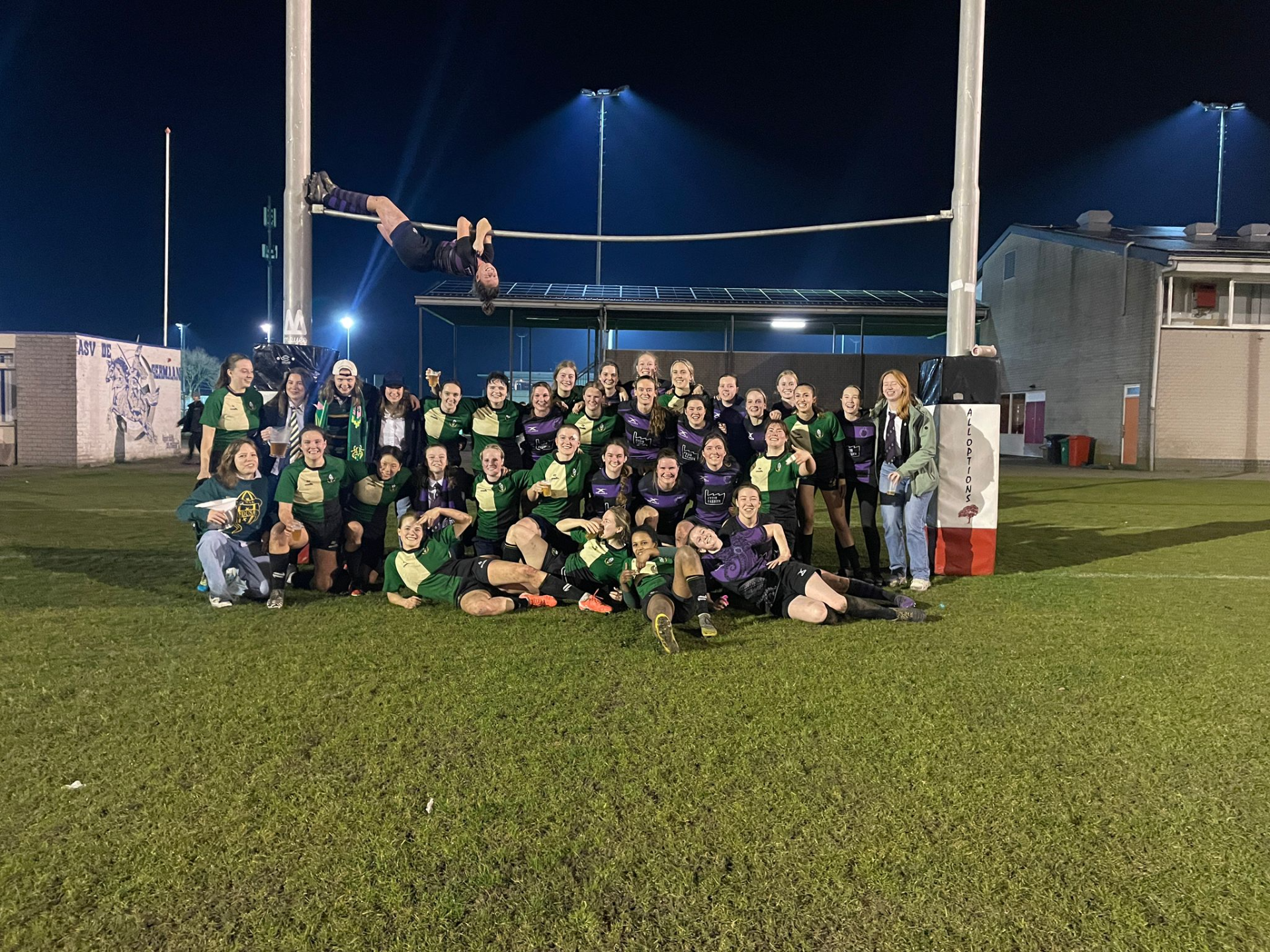25 februari was niet zomaar een dag, het was een feestdag! Niet omdat Medusa haar Dies aan het vieren was, maar omdat wij met welgeteld 15 Damesch in de stalen koets op weg waren naar Ascrum! Uiteraard werd er onderweg eerst nog een strategische tussenstop gemaakt bij de gouden drietand, waar het nodige krachtvoer werd genuttigd om goed voorbereid op het rugbyveld aan te komen.